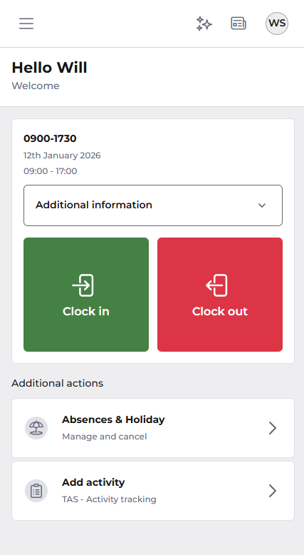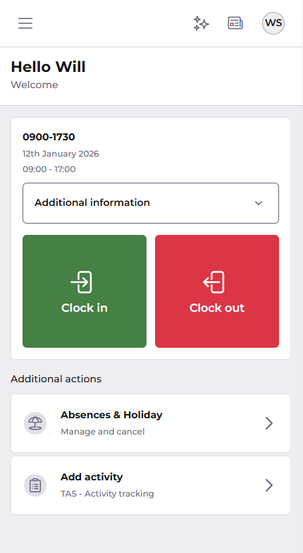 Absence bookings can be made from the home screen, allowing employee's to manage their requests with ease.
