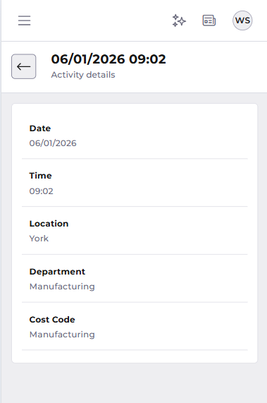 From the Time & Attendance home screen users are able to add activities to their work day with ease. Select Add Activity to track their working day.