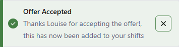 Once a Job offer has been accepted the user will receive the confirmation below: