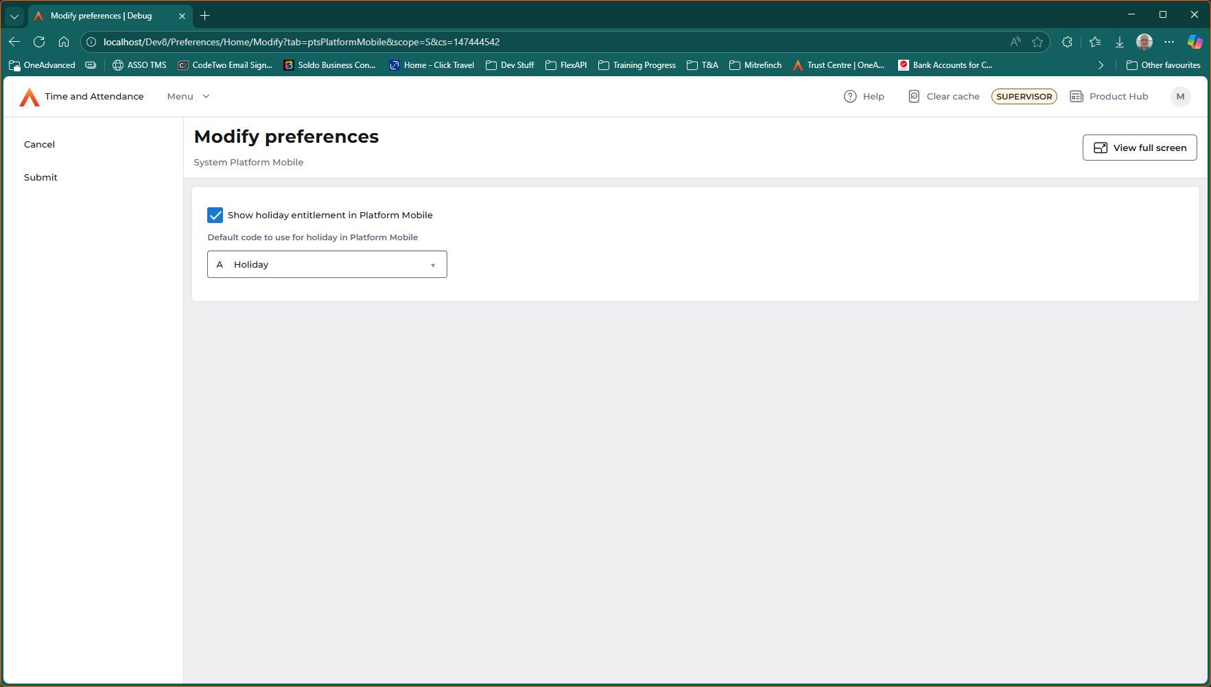 In Windows you can access the system preferences, Platform Mobile tab to select the 'Use holiday entitlement with mobile option and then select the default holiday code to use.
