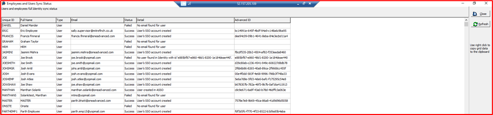 We’ve enhanced the Employees and Users Sync Status view to include a new column "Advanced ID". This update allows users to see the Identity Advanced ID directly in the sync log. With this, Administrators can easily identify and troubleshoot any issues that occur during the sync process between systems.